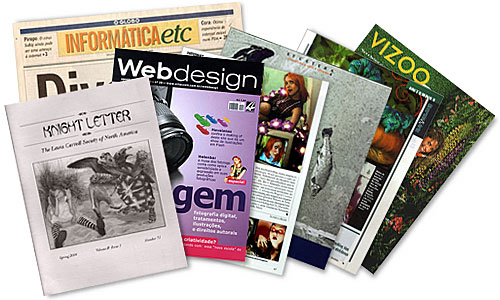 Nós da Escola FotologBook [ING] Belio [ESP] Web Design POP Diário do comércio Sexy O Tempo V Et Cetera Knight Letter [EUA] Jornal do Brasil Vizoo O Globo Isto é Gente Programa Rio Show O Globo Época O Globo